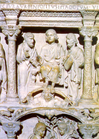 359 metų Junijaus Baso (Bassus) sarkofago, rasto po Romos šv. Petro Bazilikos Konfesijos altoriumi, centrinė dalis.