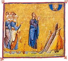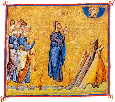Miniatiūra iš Dionysiou vienuolyno Atoso kalne (kodeksas 587), nutapyta Konstantinopolyje apie 1059 metus.